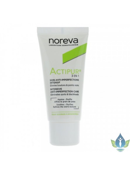 e soin anti-imperfections Actipur 3 en 1 est conçu pour les peaux présentant des imperfections modérées à sévères, de type points noirs, boutons disgracieux, zones inflammées et excès de sébum. Il s’adresse aux adolescents et aux adultes à la peau à tendance acnéique. Ce soin va réguler le flux sébacé, limiter la prolifération bactérienne et matifier votre visage. Elle va déloger en profondeur les impuretés sans agresser la peau.
