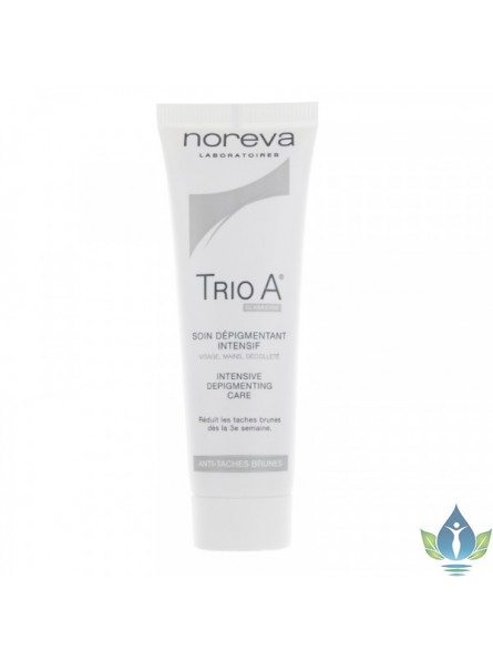 Trio A crème soin dépigmentant intensif du laboratoire Noreva réduit les taches brunes localisées sur le visage, le décolleté et les mains.