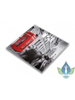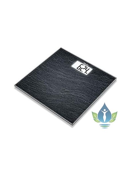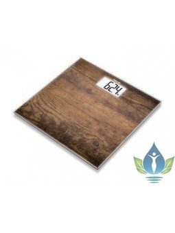 Se sentir dans la nature dans votre salle de bains : cest possible à tout moment avec ce pèse-personne en verre imitation bois.