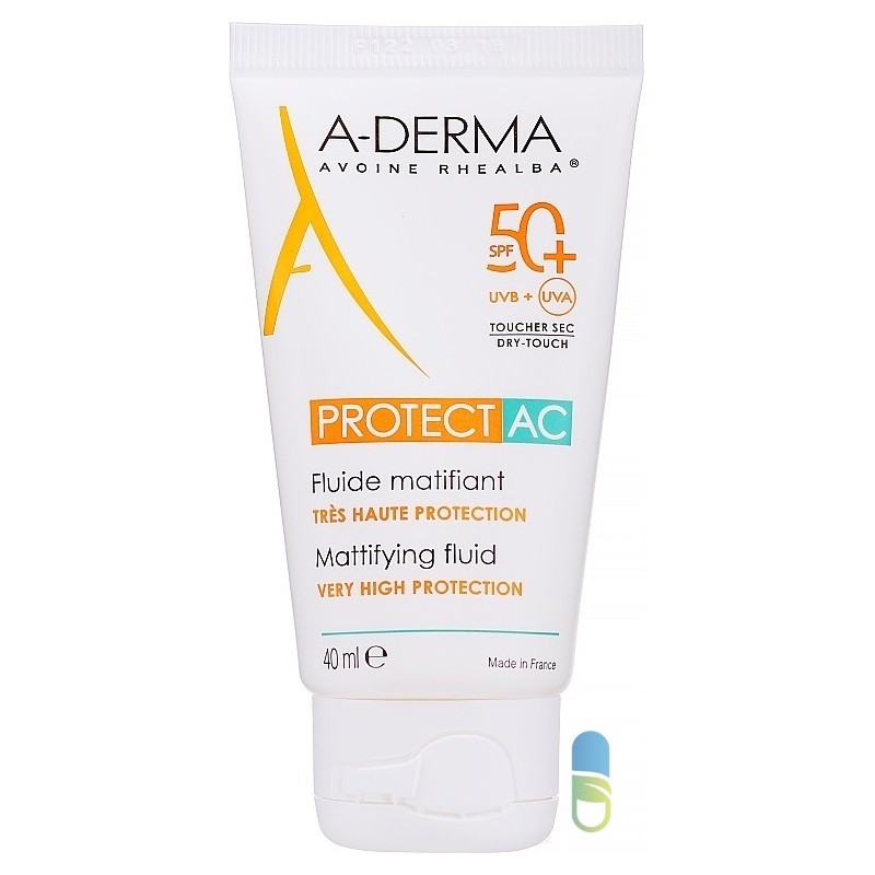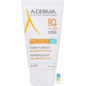 Le fluide matifiant SPF 50+ A-Derma Protect AC est une très haute protection solaire destinée aux personnes aux peaux grasses à tendance acnéique. Comme la plupart des soins A-Derma, ce produit solaire contient de l’huile de plantules d’avoine Rhéalba. Elle est utilisée ici pour défendre les cellules épidermiques des attaques des UVA. Elle va donc permettre à ce fluide matifiant de rééquilibrer, d’apaiser et de réparer les peaux fragilisées par le soleil grâce aux actifs réparateurs et aux molécules anti-irritantes qu’elle contient.