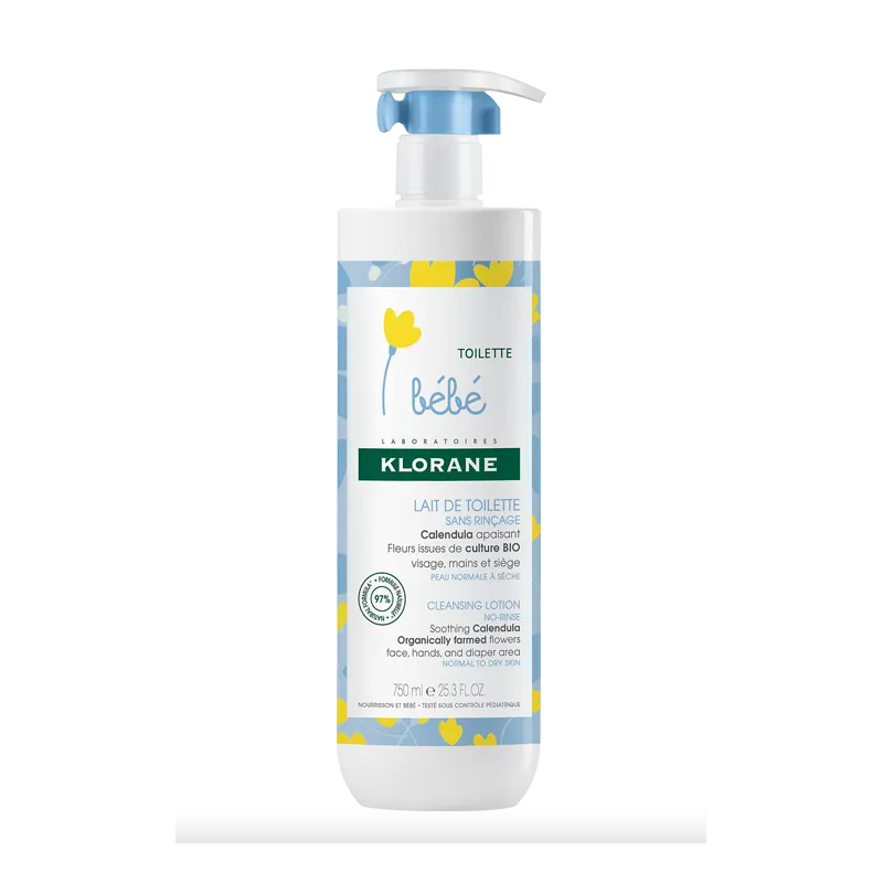 Le Lait de Toilette Sans Rinçage au Calendula de la gamme Bébé de KLORANE a été mis au point pour une toilette haute tolérance des bébés et des nouveau-nés. Ce soin est élaboré avec une nouvelle formule naturelle au Calendula apaisant. Il s’agit d’un actif obtenu à partir de fleurs issues de culture bio. Enrichis en huile végétale, les ingrédients à 97% d’origine naturelle de ce lait de toilette contribuent à un nettoyage délicat du visage, des mains et du siège de bébé. Ils participent également à la nutrition des peaux normales à sèches. Ce soin nettoyant a été testé sous contrôle pédiatrique. Il laisse une peau nourrie, apaisée et protégée du dessèchement.