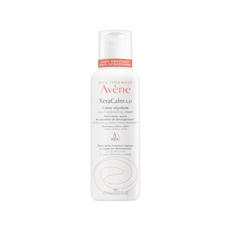 XeraCalm A.D crème relipidante soulage les peaux très sèches sujettes à l’eczéma atopique et aux démangeaisons grâce à l’association d’actifs d’exception choisis pour leur efficacité et leur innocuité. I-modulia®, 1er actif postbiotique issu de l’eau thermale d’Avène diminue les démangeaisons*, stimule les défenses de la peau et lutte contre les irritations. Les Cer-omega, lipides semblables à ceux de la peau agissent sur la sécheresse et restaurent la barrière cutanée. Grâce à la Cosmétique Stérile®, une technologie unique permettant de maintenir le produit stérile tout au long de son utilisation et son tube pompe parfaitement hermétique, ce soin haute performance garantit une sécurité et un respect optimal de la peau et du microbiome cutané. Sans conservateurs, sans parfum, non comédogène et élaboré en vue de minimiser les risques de réactions allergiques, XeraCalm A.D crème relipidante est idéale pour la peau des nourrissons, des enfants et des adultes.