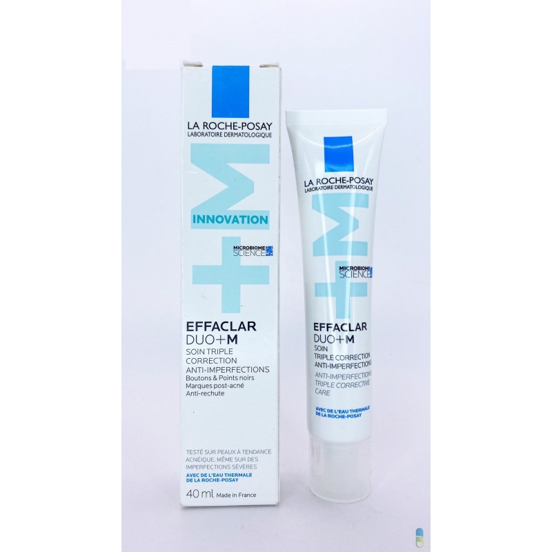 Effaclar Duo+M de La Roche-Posay est un soin triple correction anti-imperfections, désormais enrichi par la science du microbiome, pour une efficacité ciblée, même sur les imperfections sévères. Une découverte scientifique nous montre que dans le microbiome de la peau, les bactéries responsables des imperfections sont composées de plusieurs sous-types appelés phylotypes. La recherche a montré qu’un manque de diversité entre les phylotypes et une prédominance du phylotype IA1 sont associés à la prolifération des imperfections et à la sévérité de l’acné. Cette nouvelle formule enrichie par la science du microbiome grâce au nouvel actif Phylobioma qui agit sur le phylotype IA1 pour réduire les imperfections et la surproduction de sébum à la source.