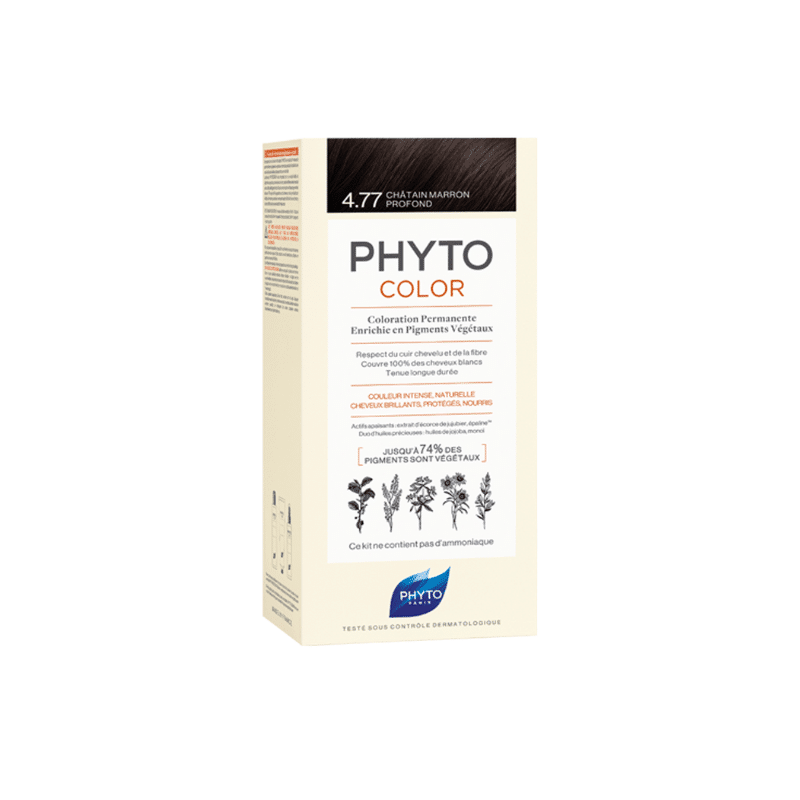 Succombez à la richesse du Châtain Marron Profond, une nuance sophistiquée qui apporte une dimension unique et un relief irrésistible à votre chevelure. Phytocolor 4.77 est la coloration idéale pour celles qui recherchent un marron intense, chaud et vibrant, tout en préservant la santé et la brillance de leurs cheveux.