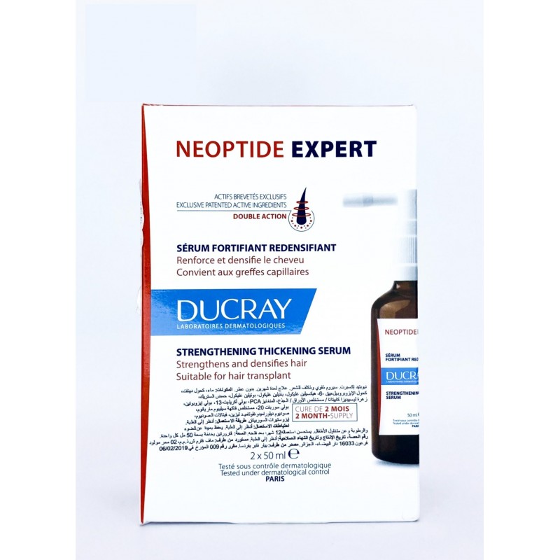 Le Sérum NEOPTIDE EXPERT agit sur la perte de volume chronique¹ de l’homme et de la femme, grâce à ses actifs brevetés exclusifs. Double action : fortifiant et redensifiant. Il densifie la chevelure², augmente le volume² et renforce la fibre capillaire². Mécanismes d’action inédits : augmentation de l’ancrage des cheveux et régulation du cycle pilaire. Dans sa formule : de l’ANCHORANE pour l’ancrage, du LESPEDEZA pour la régulation du cycle pilaire, de la MANGALIDONE pour la microcirculation et des agents hydratants pour le confort d’utilisation. Son efficacité est prouvée cliniquement dès 2 mois¹. Il peut être employé seul, en complément de traitements médicamenteux de référence, ou en accompagnement des greffes capillaires. Il s’applique 1 fois par jour en 8 pulvérisations sur le cuir chevelu sec ou humide et s’accompagne d’un léger massage. Il contribue à une amélioration significative de la qualité de vie des personnes souffrant d’une perte de volume chronique¹. Testé sous contrôle dermatologique.