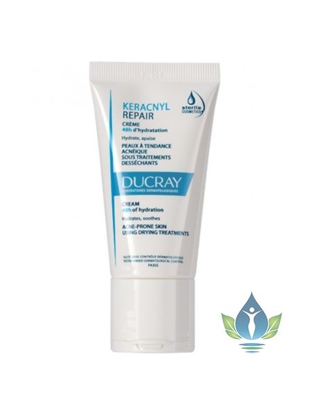 DUCRAY KERACNYL Repair Crème. La Crème Repair de Keracnyl est un soin unique qui garantit 48H d'hydratation, une réparation et un apaisement intense aux peaux atteintes de dessèchement induit par un traitement médicamenteux anti-acnéique oral.
