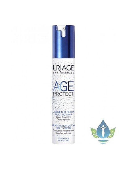 La crème de nuit détox multi-action de la gamme AGE PROTECT d'Uriage est une crème veloutée qui agit sur les signes de l'âge, améliore l'oxygénation cellulaire et hydrate parfaitement la peau pendant la nuit. Elle diminue visiblement l'apparence des rides et ridules et apporte tonicité, fermeté, vitalité et éclat à la peau. Le système de détoxification cellulaire qui compose la formule protège la peau contre les polluants et améliore ainsi l'oxygénation cellulaire. Sa formule, enrichie en Eau Thermale d'Uriage et en cires végétales hydrate parfaitement la peau et lui apporte souplesse. Chaque matin le teint est dégrisé et rayonne d'un air frais, la peau est régénérée et détoxifiée.
