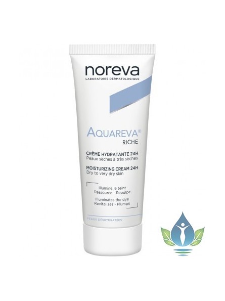 AQUAREVA Crème hydratante 24H riche aux perles d’eau des glaciers, dédiée aux peaux sèches et très sèches, déshydratées. AQUAREVA texture riche est dotée du complexe hydro essentiel, d’hydro-capteurs d’acide hyaluronique réticulé, de l’hydrastim 4C et acides gras essentiels 3 et 6, permettant d’hydrater en profondeur, de nourrir la peau tout en procurant un confort immédiat et durable. Ressourcée en profondeur, la peau est revitalisée, elle retrouve confort, souplesse et luminosité dès la 1ère application. Sa texture onctueuse dotée d’un parfum subtil, enveloppe délicatement la peau, lui apportant fraîcheur et bien-être instantanés. Sans paraben.