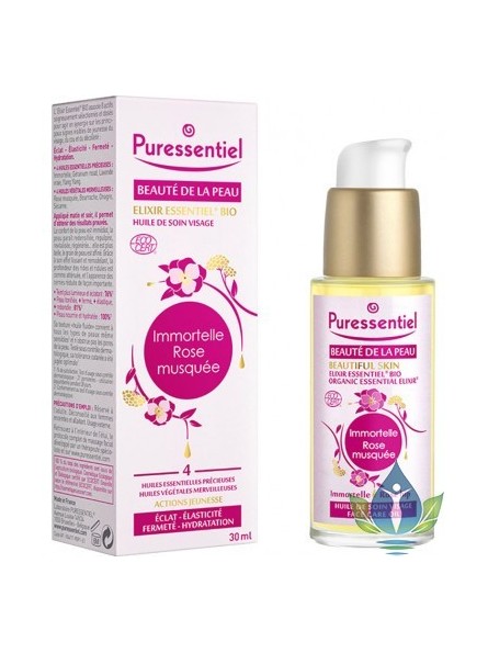 Huile de soin visage PURESSENTIEL est une huile sèche anti-âge et hydratante. Elle redonne de l'éclat, de l'élasticité et de la fermeté à la peau tout en l'hydratant intensément et en profondeur. Convient à tous les types de peau.