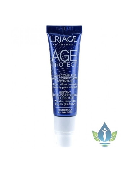 Le soin combleur multi-corrections instantané Age Protect d'Uriage, un soin indiqué pour tous les types de peaux et qui estompe les signes visibles de l’âge et les corrige durablement. Ayant un effet instantané combleur et flouteur, il lisse visiblement la surface cutanée et corrige les tâches et grain de peau irrégulier. Effet Combleur, son acide hyaluronique réticulé cible spécifiquement les rides (patte d'oie, sillons, contour des lèvres...) pour lisser visiblement la surface cutanée. Effet Flouteur, son agent pore-refiner est associé à des poudres soft-focus pour resserrer les pores et flouter visiblement marques, taches et grain de peau irrégulier. Ce soin associe le Brevet BLB (Barrière Lumière Bleue) à des actifs exclusifs (rétinol, acide hyaluronique, extraits végétaux et vitamines) et aux propriétés uniques de l'Eau Thermale d'Uriage pour agir simultanément sur les signes de l'âge et sur les effets des agressions quotidiennes que subit la peau (lumière bleue, UV, pollution...).
