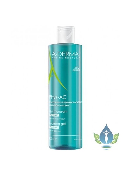 A-DERMA PHYS-AC Gel Moussant Purifiant. Concentré en actifs d'origine végétale, le gel moussant purifiant PHYS-AC nettoie et assainit les peaux à tendance acnéique en douceur sans les dessécher, grâce à des agents hydratants compensateurs. Pour une peau nette, fraîche, matifiée et délicatement parfumée. Sa texture gel-fluide très frais permet un rinçage facile.