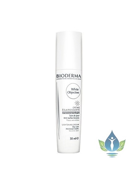 BIODERMA WHITE OBJECTIVE Crème Active Soin de Jour Eclaircissant Anti-taches Bunes éclaircit, unifie et illumine le teint. Elle favorise la disparition des taches brunes et prévient leur réapparition. • White Objective Crème active est spécialement formulée pour respecter les peaux les plus sensibles. • La vitamine C, libérée progressivement pour une efficacité longue durée, permet de réduire le nombre de pigments de mélanine contenus dans l’épiderme. Elle lutte ainsi contre les hyperpigmentations déjà installées et prévient les pigmentations futures. Les filtres anti UVA/UVB protègent des rayonnements solaires pour prévenir toute nouvelle pigmentation. La texture de White Objective Crème active est agréable, légère et totalement invisible à l’application. Elle permet le maquillage. La peau est éclaircie, unifiée et lumineuse. Formule sans parfum. Non comédogène, hypoallergénique.