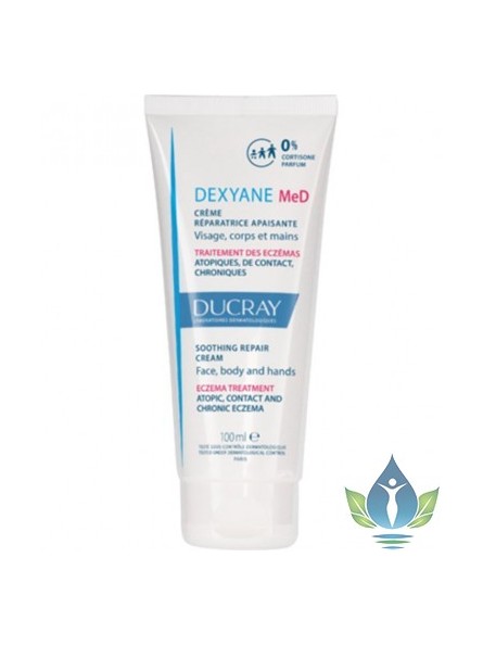 DUCRAY DEXYANE MED Crème réparatrice apaisante. La crème réparatrice apaisante Dexyane MeD de Ducray est conseillée dans les cas d'eczémas atopiques, de contact, chroniques des mains, du visage et du corps. Cette crème répare la barrière cutanée abimée et corrige sa sècheresse, elle soulage les démangeaisons et réduit les rougeurs et irritations et préserve la peau en limitant l'adhésion bactérienne. Sans cortisone. Sans paraben. Sans parfum.