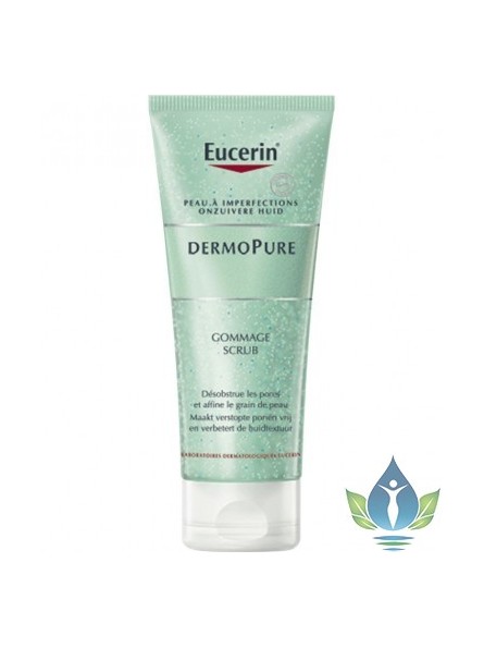 Le gommage scrub DermoPure d'Eucerin, un soin pour le visage qui permet de désobstruer les pores et affiner le grain de peau pour éliminer points noirs et boutons des peaux grasses à imperfections. Avec une formule sans savon, contenant des tensioactifs, il permet un nettoyage à la fois doux et efficace. Ce soin gommant scrub contient de l’acide lactique et des micro-particules pour désobstruer les pores, lutter contre les points noirs et les imperfections et affiner le grain de peau. Il exfolie également, sans agresser, pour une peau claire et plus lisse. Non comédogène, action comédolytique. Testé dermatologiquement.