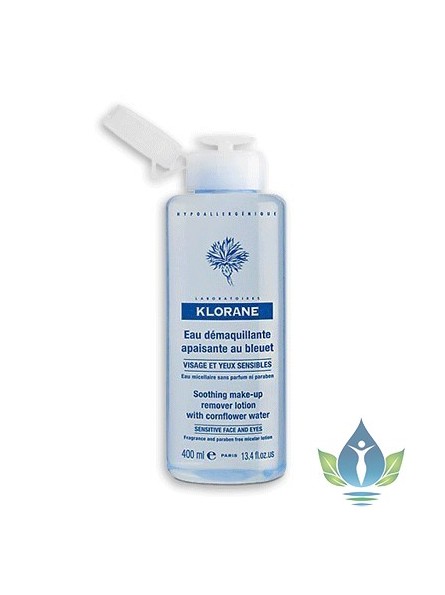 KLORANE Eau démaquillante apaisante au bleuet. L'eau florale de bleuet a des propriétés apaisantes et décongestionnantes. Spécialement formulée pour les yeux sensibles et porteurs de lentilles, cette eau démaquillante, sans parfum, sans paraben et sans alcool, élimine délicatement toute trace de maquillage du visage, des lèvres et des yeux, laissant la peau nette et fraîche.