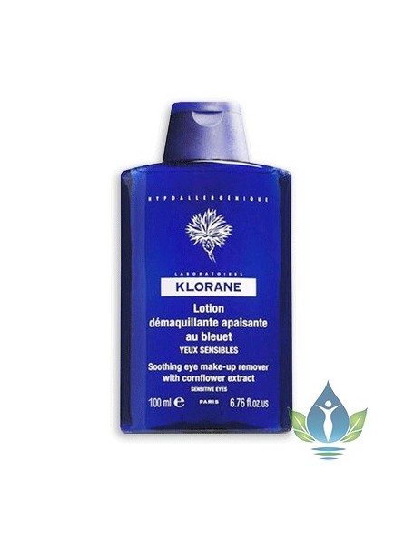 KLORANE Lotion démaquillante apaisante. Riche en eau florale de bleuet aux propriétés apaisantes et décongestionnantes, cette lotion élimine facilement le maquillage. Très douce, de pH identique à celui des larmes, elle est parfaitement tolérée et ne pique pas les yeux même porteurs de lentilles.