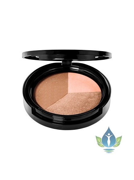 Cette poudre s'utilise après avoir appliqué un correcteur de teint ou un fond de teint. À l’aide d’un pinceau doux, prélever délicatement la poudre en effectuant un geste circulaire pour mélanger les 3 couleurs. 2 tours suffisent pour avoir la quantité né