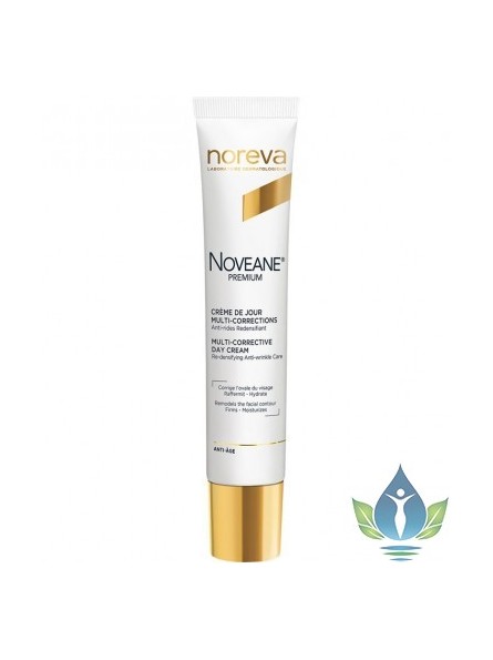 La crème de jour multi-corrections Noveane Premium de Noreva est un soin anti-âge pour le visage qui agit au cœur de l'épiderme pour lisser, combler les rides, restaurer l'ovale du visage, illuminer le teint et apporter souplesse et élasticité à la peau. Elle est hydratante, redensifiante et restructurante. Sa formule innovante associe des tenseurs exclusifs et synergiques, notamment le fibrolastyl V3D, le bioceramix M, le chronostim VII et un duo d’acides hyaluroniques, qui permet à cette crème de jour de lisser et de combler les rides. Enrichie en SkinProtect, puissant bouclier antioxydant, cette crème de jour multi-corrections neutralise les facteurs d'accélération du vieillissement cutané. Au fil des jours, la peau est repulpée, les traits se réhaussent visiblement et le maintien du visage se renforce.