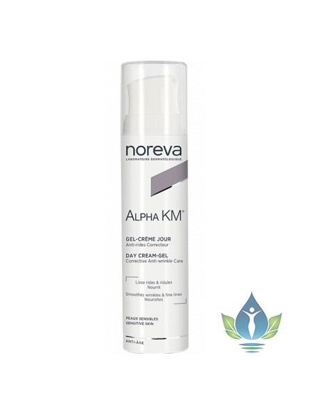 Le gel-crème jour Alpha KM de Noreva est un soin anti-âge correcteur de rides installées, destinée aux peaux sensibles, il permet de lisser, réparer et raffermir la peau du visage, tout en hydratant intensément l'épiderme. Grâce à sa triple action lissante, régénérante et réparatrice, la peau se reconstruit et se retend. Formulé avec des Biocéramides Human-like et de l’AHA afin de fournir les éléments essentiels pour stimuler le turn over cellulaire cutané. Les rides sont visiblement diminuées et le visage est hydraté. Ce soin permet d’apporter un apaisement et un confort exceptionnel des peaux sensibles pour une efficacité anti-âge visible. Sa texture, qui pénètre rapidement laisse la peau agréablement parfumée. Peut être utilisé comme base de maquillage. Testé sous contrôle dermatologique.