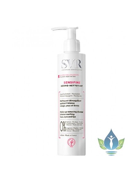 SVR SENSIFINE Dermo-nettoyant apaisant visage. Ce nettoyant démaquille et apaise intensément le visage, les yeux et les lèvres. Il soulage les peaux réactives hypersensibles et intolérantes. 0% parfum, paraben, alcool, conservateur, tensio-actif, silicone, huile minérale.