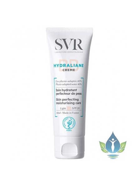 SVR HYDRALIANE BB Crème Light SPF20. La BB crème light hydraliane s'adapte à la carnation de la peau et procure un effet seconde peau immédiat. La peau est plus tendre grâce à l'hydratation, plus uniforme grâce aux pigments nudes, plus éclatante grâce à des agents soft focus flouteurs et une once de mica lumière. Le tout en protégeant la peau avec un système de protection UVB/UVA SPF20. Pour une hydratation immédiate, durable et intense des peaux sensibles. Sans Paraben.