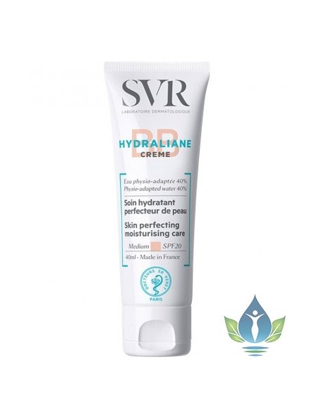 SVR HYDRALIANE BB Crème Medium SPF20. La BB crème medium hydraliane s'adapte à la carnation de la peau et procure un effet seconde peau immédiat. La peau est plus tendre grâce à l'hydratation, plus uniforme grâce aux pigments nudes, plus éclatante grâce à des agents soft focus flouteurs et une once de mica lumière. Le tout en protégeant la peau avec un système de protection UVB/UVA SPF20. Pour une hydratation immédiate, durable et intense des peaux sensibles. Sans Paraben.