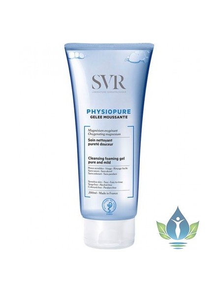 SVR PHYSIOPURE Gelée Moussante. La gelée moussante Physiopure au magnésium oxygénant est un soin nettoyant pureté douceur pour les peaux sensibles. Sa mousse douce et onctueuse élimine les impuretés. Parfaitement nette, la peau est fraîche et oxygénée. Sa formule est prévue pour nettoyer le visage en douceur et faciliter le rinçage. pH physiologiqe et parfum agréable. Sans savon. Sans alcool. Sans paraben.