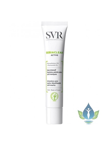 SVR SEBIACLEAR ACTIVE. Le soin intensif boutons, points noirs et anti-marques ACTIVE est spécialment conçu pour les peaux à imperfections sévères. Ce soin complet à l'action renforcée élimine boutons et points noirs, corrige les pores et les brillances. Les marques résiduelles sont visiblement réduites, moins rouges. Sa formule oil-free est hydratante et matifiante pour une longue durée et un fini non-gras. C'est une excellente base de maquillage. Sa composition à base de niacinamide 4% limite la prolifération bactérienne et élimine les imperfection liées à l'inflammation. Le gluconolactone 14% associé à de l'acide salicylique et à un agent matifiant affine le grain de peau, libère les pores obstrués, limite la formation des imperfections et régule l'excès de sébum. Sans paraben. Sans AHA. Au parfum frais sans allergène. Non-comédogène.