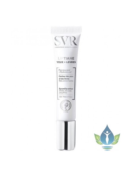 SVR LIFTIANE Yeux et Lèvres. Le soin pour les yeux et les lèvres LIFTIANE traite les rides du contour des yeux et des lèvres ainsi que les poches et les cernes. Le Laboratoire SVR crée LIFTIANE, la réponse anti-âge 360° qui combat 100% du vieillissement cutané. C'est le résultat de l'associatioin unique de 2 actifs anti-âge puissants à la plus haute concentration. Le resvératrol pur de la dernière génération est issu d'une plante ancestrale, la Renouée du Japon, la source la plus riche en resvératrol connue et 6 fois plus concentrée que le resvératrol utilisé jusqu'ici. Dosé à la plus haute concentration, il devient un anti-oxydant puissant, il comble les rides et stimule la synthèse de collagène pour une peau redensifiée. Le duo d'actifs d'acides hyaluroniques ultra-complémentaires, l'acide hyaluronique de haut poids moléculaire pour un micro-comblement immédiat et l'acide hyaluronique de moyen poids moléculaire pour régénérer en profondeur. LIFTIANE est ultra-sensorielle et addictive, délicatement parfumée de notes florales, poudrées, musquées, sans allergène et 100% respectueuse des peaux sensibles. Le soin pour les yeux et lèvres LIFTIANE combat les radicaux-libres, booste la synthèse de sirtuines et stimule la production de collagène. La peau est visiblement repulpée. Régénérant anti-âge fermeté, il augmente les défenses cutanées. Son action pro-collagène renforce la jonction dermo-épidermique. Il décongestionne et réduit les poches et cernes en un temps record.