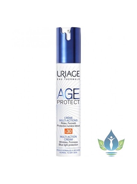 La crème multi-actions SPF30 de la gamme AGE PROTECT d'Uriage est une crème onctueuse qui agit sur les signes de l'âge, protège la peau, l'hydrate parfaitement et lui offre une protection contre les rayons UV. Elle diminue visiblement l'apparence des rides et ridules, prévient les taches pigmentaires, apporte vitalité éclat, tonicité et fermeté à la peau. Composée du brevet BLB (barrière lumière bleue), la crème multi-actions SPF30 protège la peau de la pollution, de la lumière bleue, du stress et de la fatigue notamment. Les filtres UV participent à protéger la peau des rayons UV. Sa formule enrichie en eau thermale d'Uriage et en cires végétales hydrate parfaitement la peau et lui apporte souplesse.
