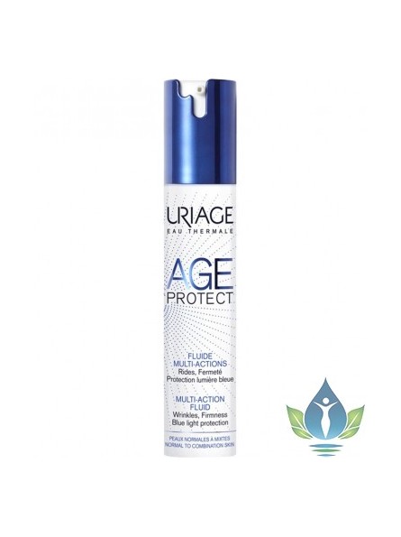 Le fluide multi-actions de la gamme AGE PROTECT d'Uriage est une crème onctueuse qui agit sur les signes de l'âges, protège la peau, réduit la taille des pores et l'hydrate parfaitement. Il diminue visiblement l'apparence des rides et ridules, prévient les taches pigmentaires, apporte vitalité éclat, tonicité et fermeté à la peau. Composé du brevet BLB (barrière lumière bleue), la crème multi-actions protège la peau de la pollution, de la lumière bleue, du stress et de la fatigue notamment. Les AHA offrent un effet matifiant et purifiant tout en resserrant les pores. Sa formule enrichie en eau thermale d'Uriage et en cires végétales hydrate parfaitement la peau et lui apporte souplesse. Le teint est alors visiblement plus lisse et le grain de la peau est affiné.