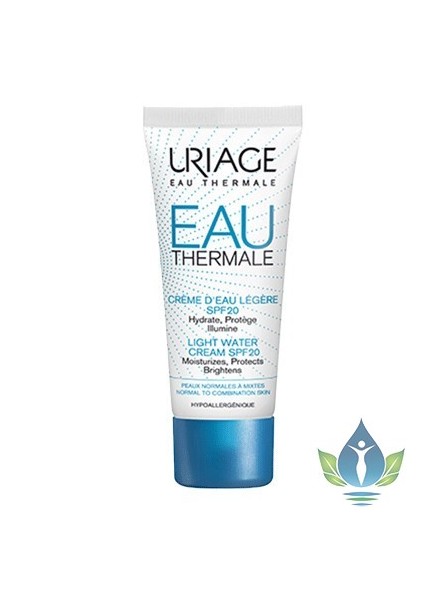 URIAGE EAU THERMALE Crème d'Eau Légère SPF20. Cette Crème d’Eau Légère enrichie en Eau Thermale d’Uriage aide à reconstruire la barrière cutanée pour maintenir un taux d’hydratation optimal. Rafraîchissante et vivifiante, la crème légère URIAGE hydrate la peau et contient des actifs qui contribuent à la préserver des effets néfastes de la pollution urbaine. Elle la protège également des UVA et UVB grâce à un filtre SPF20.