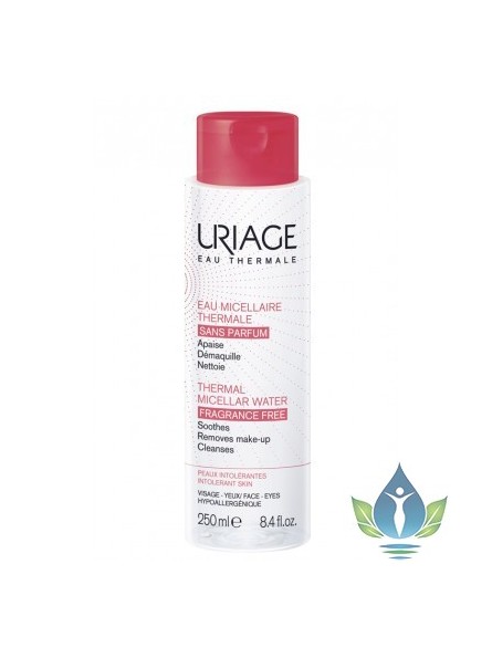 URIAGE Eau Micellaire Thermale Peaux Intolérantes. L'eau micellaire thermale pour peaux intolérantes est parfaitement adaptée au démaquillage. Enrichie en tensioactifs non ioniques doux, constitutifs des micelles, elle agit comme un aimant capturant efficacement le maquillage et les impuretés. Sans parfum, elle est spécialement formulée pour les peaux les plus intolérantes. La glycérine apaise et hydrate, l'Eau Thermale d'Uriage hydrate.