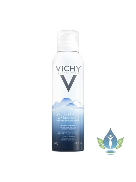 VICHY Eau thermale riche en sels minéraux et en oligo-éléments, apaise les peaux sensibles et irritées et renforce le capital défense de la peau. Sans conservateur, sans parfum.