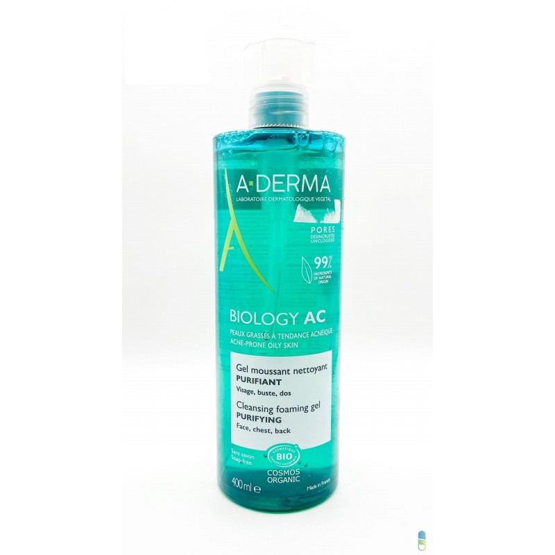 Le A-Derma Biology AC Gel Moussant Nettoyant Purifiant en format 400ml est un soin certifié bio conçu pour nettoyer en douceur les peaux grasses à tendance acnéique sans les dessécher.