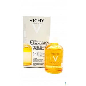 Le VICHY NEOVADIOL MENO 5 BI-SÉRUM, 30 ml, est un soin anti-âge conçu pour combattre les cinq signes du vieillissement cutané liés aux fluctuations hormonales de la périménopause et de la post-ménopause.