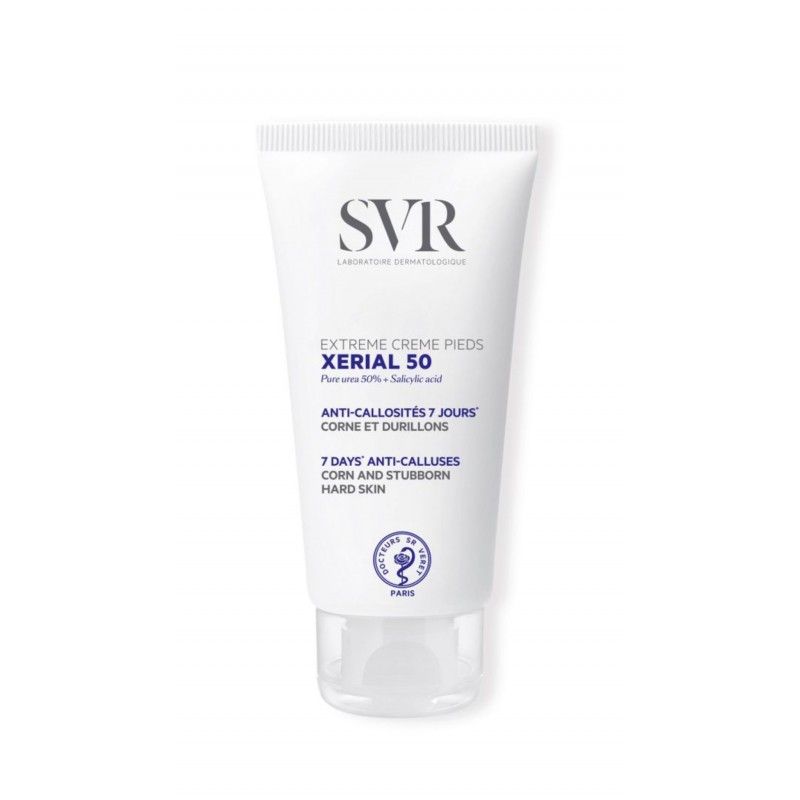 XERIAL 50 Extrême Crème Pieds, le soin kératolytique efficace dès 7 jours1. Il réduit l’épaisseur des callosités et des durillons rebelles grâce au pouvoir du brevet SVR2avec une très forte concentration d’urée pure à 50% couplé à de l’acide salicylique. Les pieds retrouvent rapidement plus de douceur et un aspect plus régulier. APPLIQUEZ JUSQU’À L’EFFET RECHERCHÉ Appliquez 2 fois par jour par massages circulaires sur les zones concernées jusqu’à l’obtention de l’effet recherché. Peut également s’utiliser sur les zones épaissies des mains et des coudes.