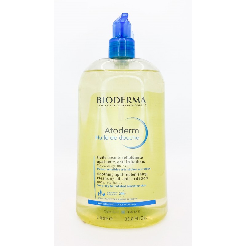 Atoderm Huile de douche nettoie en douceur. Sa formule exclusive composée d’agents relipidants (vitamine PP et biolopides végétaux*) et hydratants nourrit intensément la peau, calme les sensations de tiraillement, et protège des agressions extérieures. Le complexe breveté Skin Barrier Therapy™ permet de limiter l’adhésion de certaines bactéries (staphylocoque doré) à la surface de la peau, qui peuvent être à l’origine de l’aggravation de la sécheresse cutanée. Hydratation 24h. La peau est plus hydratée de 39% après un mois. Confort intense et durable. Conseils d’utilisation :