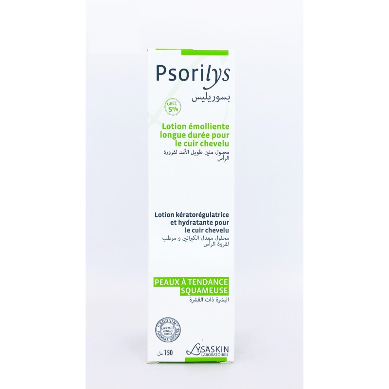 La lotion émolliente longue durée PSORIlys hydrate* durablement les cuirs chevelus à tendance squameuse. L’URODIUM® contenu dans PSORIlys, est une formule active brevetée, qui améliore le pouvoir hydratant de l’Urée (Facteur Naturel d’Hydratation dosé à 5%) et surtout sa rémanence (action de très longue durée). L’association d’actifs contenue dans PSORIlys lui confère des propriétés kératorégulatrices qui permettent d’éliminer les squames et de limiter leur réapparition. Conseil d’utilisation : Appliquer Psorilys sur le cuir chevelu 1 à 2 fois par jour et masser. PSORIlys cuir chevelu a été testé cliniquement sous contrôle de dermatologues. Non parfumé. Une sensation de picotement passagère liée à l’activité du produit peut être ressentie à l’application sur les peaux réactives. À conserver à moins de 25°C. Produit pour adulte. Eviter le contact avec les yeux. En cas de contact avec les yeux, rincer immédiatement avec de l’eau. Contenance : flacon de 150ml avec applicateur. Ingrédients : AQUA (WATER), UREA, GLYCERIN, SORBITOL, SODIUM CHLORIDE, SODIUM CITRATE, GLUCONOLACTONE, XANTHAN GUM, CALCIUM GLUCONATE, SODIUM BENZOATE, CITRIC ACID. Précision : PSORIlys n’est pas un produit de traitement du Psoriasis. C’est en revanche un soin émollient pour hydrater la peau et améliorer le confort cutané des personnes ayant des peaux à tendance squameuse.