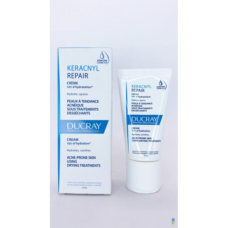 La crème compensatrice qui répare dès la 1ère heure*, hydrate et apaise immédiatement**, la peau altérée par les traitements desséchants dans l’acné sévère, grâce à: -La Technologie hydra-compensatrice pour une hydratation jusqu’à 48h***, en formant des réservoirs d’eau. -La Niacinamide pour apaiser immédiatement les irritations et les rougeurs, empêcher les sécheresses et renforcer la barrière cutanée. La peau est instantanément confortable et apaisée, durablement hydratée.