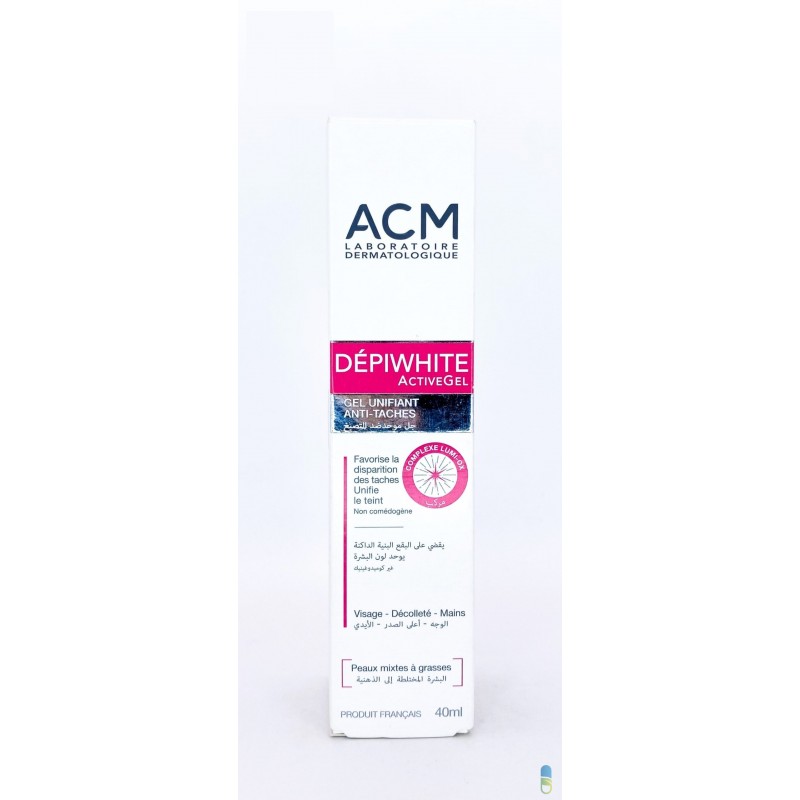 Le gel unifiant Dépiwhite Active d’ACM est spécialement conçu pour réduire les taches pigmentaires des peaux mixtes à grasses. Grâce à son complexe Lumi-OX, ce soin agit en profondeur pour limiter la production de mélanine, accélérer sa dégradation et prévenir l’apparition de nouvelles taches. Ce gel procure un teint unifié et lumineux tout en protégeant la peau des radicaux libres. Sa texture légère et fondante offre un fini mat, sans brillance, parfait pour les peaux à tendance grasse. Non comédogène et sans parfum, il constitue une excellente base de maquillage. Ingrédients actifs :