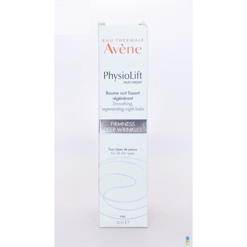 AVENE Physiolift Nuit Baume nuit Lissant régénérant Tous types de peaux Hypoallergénique et non comédogène 30ml Ce baume anti-ride lissant et régénérant convient à tous les types de peau, même les plus sensibles. Il agit efficacement contre les rides déjà présentes et renforce la fermeté de la peau, limitant ainsi la venue de nouvelles rides. Physiolift nuit baume nuit lissant régénérant a aussi le pouvoir de défatiguer les traits, car sa formule a été élaborée pour s’adapter aux biorythmes de la peau. Elle contient des actifs innovants et puissants : – l’AscofillineTM associé aux Mono-Oligomères d’Acide Hyaluronique et au Rétinaldéhyde recharge la peau en collagène et en acide hyaluronique (tests in-vitro) – l’Hespéridine Methyl Chalcone, aux effets détoxifiants, défroisse les traits – l’eau thermale d’Avène apaise et empêche les irritations Tout au long de la nuit, le soin reconstruit la peau et au réveil, votre visage paraît plus lumineux et parfaitement reposé. La texture onctueuse et délicatement parfumée du baume Physiolift nuit apporte une sensation de douceur. En vous réveillant le matin, votre peau aura l’air plus fraîche et vos traits moins fatigués. Utilisation : Avant de traiter la peau, prenez toujours soin de vous démaquiller avec le Lait démaquillant douceur. Appliquez le matin la PhysioLift JOUR Crème lissante sur le visage, le cou et le décolleté. Le soir, après le démaquillage, appliquezPhysioLift NUIT Baume lissant régénérant. Ensuite, vous pouvez déposer une noisette de PhysioLift YEUX sur le bout des doigts puis tapoter légèrement autour des yeux en insistant sur les pattes d’oie. Pour encore plus d’efficacité, appliquez PhysioLift PRECISION Soin combleur dans le creux des rides et faites pénétrer délicatement. Physiolift nuit baume nuit lissant régénérant fait partie d’une gamme complète de soins ultra performants pour stopper les effets du vieillissement.