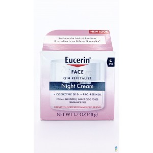Eucerin Q10 Anti-Ride Facial Night Cream + Pro-Retinol est une crème de nuit pour la peau sensible qui agit pendant que vous dormez pour aider à réduire l’apparence des ridules en seulement 5 semaines (1).Cette crème de nuit pour le visage est formulée avec Coenzyme Q10, Vitamine E, Huile de noix de macadamia et Pro-Retinol pour hydrater la peau et adoucir l’apparence des ridules pour se défendre contre les signes du vieillissement. Cette crème de nuit au rétinol est spécifiquement formulée pour être non irritante et douce pour les peaux sensibles. La crème de nuit pour le visage antirides Eucerin Q10 + Pro-Retinol est non comédogène, sans parfum et sans alcool, elle peut donc être utilisée en toute sécurité sur les peaux sensibles. Pour l’utiliser, appliquez cette crème hydratante pour le visage Eucerin crème sur le visage et le cou. Pour de meilleurs résultats, utiliser tous les soirs. Eucerin est une marque de soins de la peau recommandée par un dermatologue et basée sur une approche scientifique sans compromis. Avec des produits de soins de la peau conçus pour restaurer et maintenir une peau d’apparence saine, les familles du monde entier se tournent vers Eucerin pour améliorer la beauté extérieure et la confiance en soi. (1) lorsqu’il est utilisé deux fois par jour ou en association avec la crème antirides Eucerin Q10 Day.