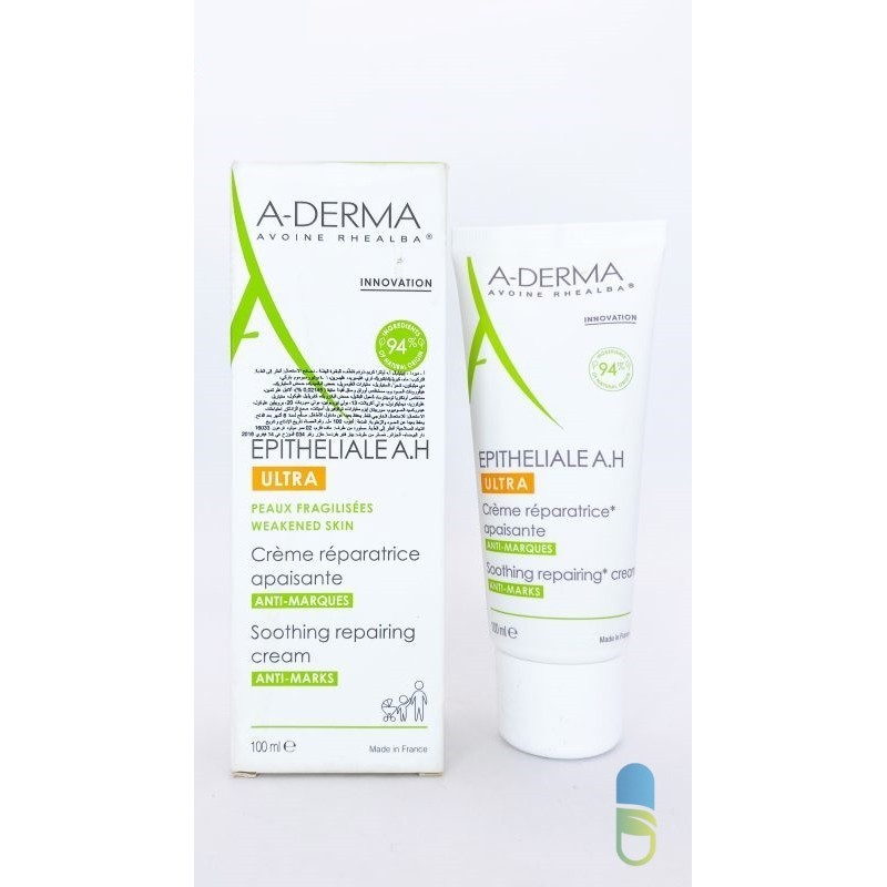 A-Derma Epitheliale A.H Ultra Crème Ultra Réparatrice est la 1re crème cicatrisante avec une double action inédite : ultra-réparatrice et anti-marques. Répare et apaise la peau suite à une petite intervention dermatologique ou dans le soin des altérations cutanées superficielles pouvant laisser des marques. Une réparation cutanée rapide et esthétique avec une efficacité anti-marques perçue en 15 jours par 94% des utilisateurs. Elle apaise et favorise la réparation épidermique des peaux fragilisées. Pour une réparation* cutanée esthétique avec une efficacité anti-marques, perçue en 15 jours par 94%* des utilisateurs. La texture de cette crème réparatrice est ultra-glissante et gélifiée pour un fini invisible et non gras. Elle est indiquée pour traiter les peaux fragilisées des enfants à partir de 2 ans et des adultes. Appliquez A-DERMA Epithéliale AH Ultra Crème sur les coupures, brûlures, actes esthétiques comme lasers et peelings, ou encore sutures post chirurgie.