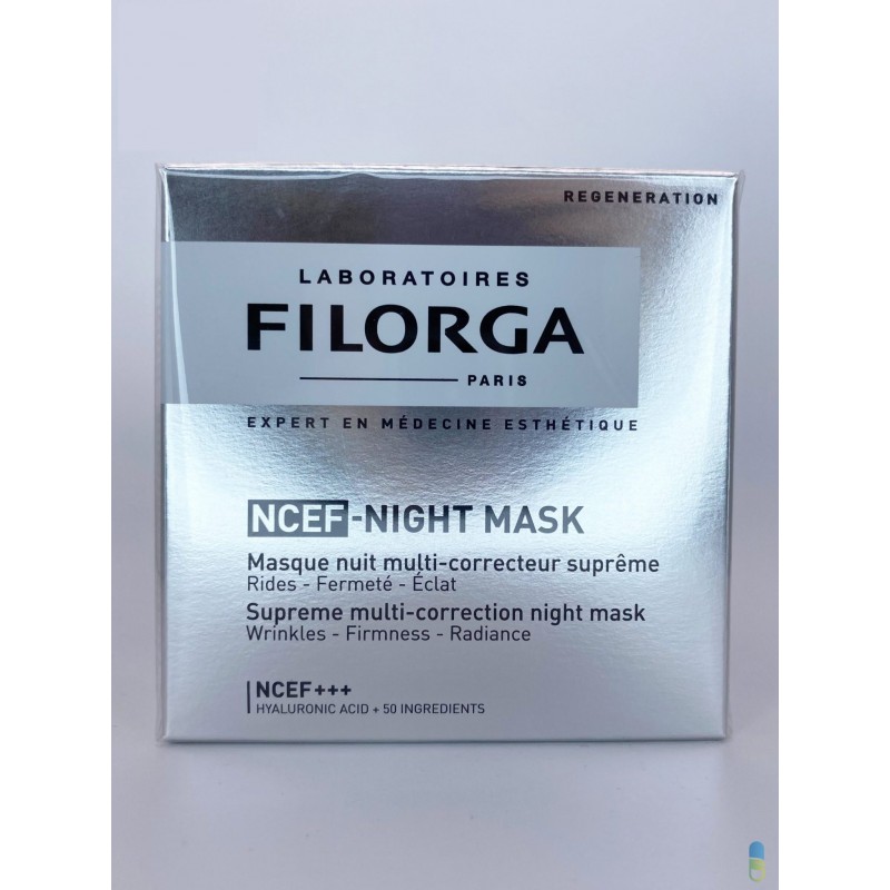 NCEF-NIGHT MASK est un masque anti-rides multi-correcteur spécial nuits courtes, destiné à améliorer la qualité des peaux fatiguées, stressées, et à favoriser la récupération cutanée nocturne. Pour une peau visiblement plus jeune, nuit après nuit. Sa formule concentrée en NCEF, un complexe polyrevitalisant unique mis au point par les Laboratoires FILORGA [acide hyaluronique, vitamines, acides aminés, minéraux, co-enzymes, anti-oxydant], vise une rénovation intensive de la qualité de peau. Simultanément, un actif défatiguant et de puissants peptides repulpants s’associent pour libérer la peau du stress oxydatif et des polluants et révéler, au réveil, des traits reposés et un teint rayonnant. Formulé pour tous les types de peaux. Le masque nuit visage NCEF-NIGHT MASK possède une texture gel enveloppante, à pénétration rapide.