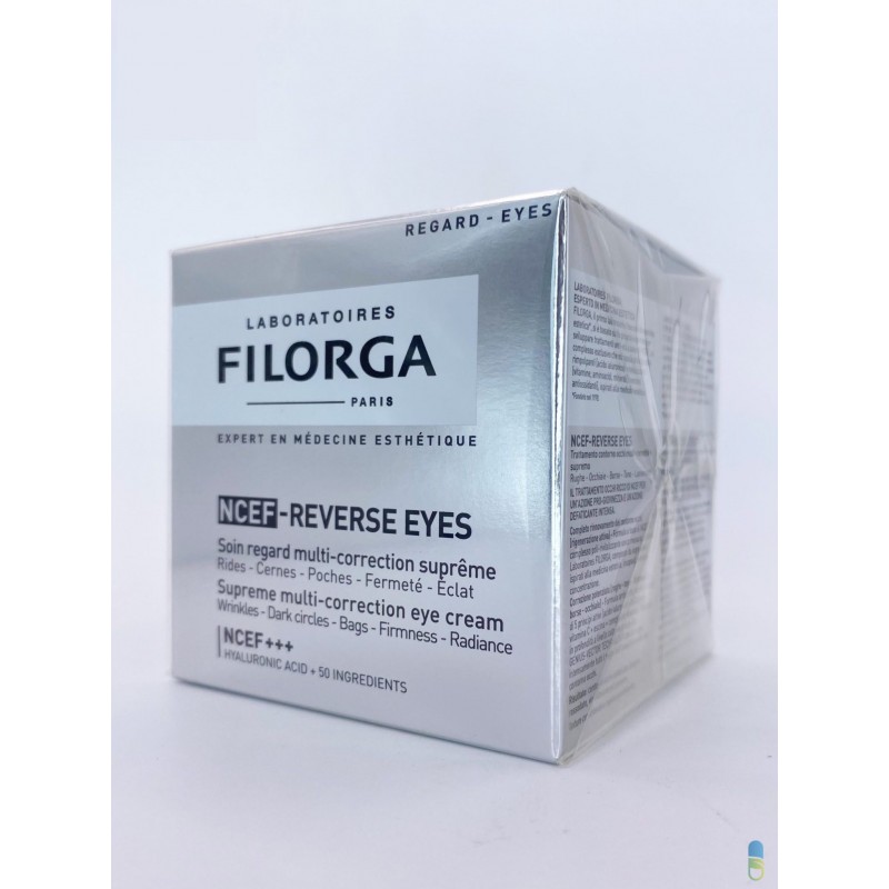 NCEF-REVERSE EYES est un soin yeux conçu pour corriger tous les signes de l’âge de la zone du regard : rides, cernes, poches, relâchement de la peau, perte d’éclat. Sa formule concentrée en NCEF, un complexe polyrevitalisant unique mis au point par les Laboratoires FILORGA [acide hyaluronique, vitamines, acides aminés, minéraux, co-enzymes, anti-oxydant], vise une rénovation complète du contour des yeux et un regard défatigué. Simultanément, un cocktail de 5 actifs [acide-hyaluronique + collagène + vitamine C + escine + complexe végétal] corrige intensément tous les signes de vieillissement de la zone délicate du regard. Idéal pour tous les types de peaux.